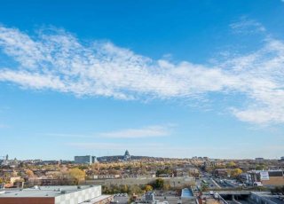 Condos Rouge -- Superbe unité lumineuse de 1 chambre et 1 salle de bain au 8e étage avec stationnement et casier. Vues imprenables sur l'Oratoire Saint-Joseph. Profitez d'aménagements haut de gamme : centre de mise en forme, piscine intérieure, jacuzzi, saunas et terrasse sur le toit avec BBQ. Emplacement de choix, à quelques pas du métro Namur, de l'IGA, des pharmacies, du nouveau centre commercial Royalmount, des parcs et des grands axes routiers.